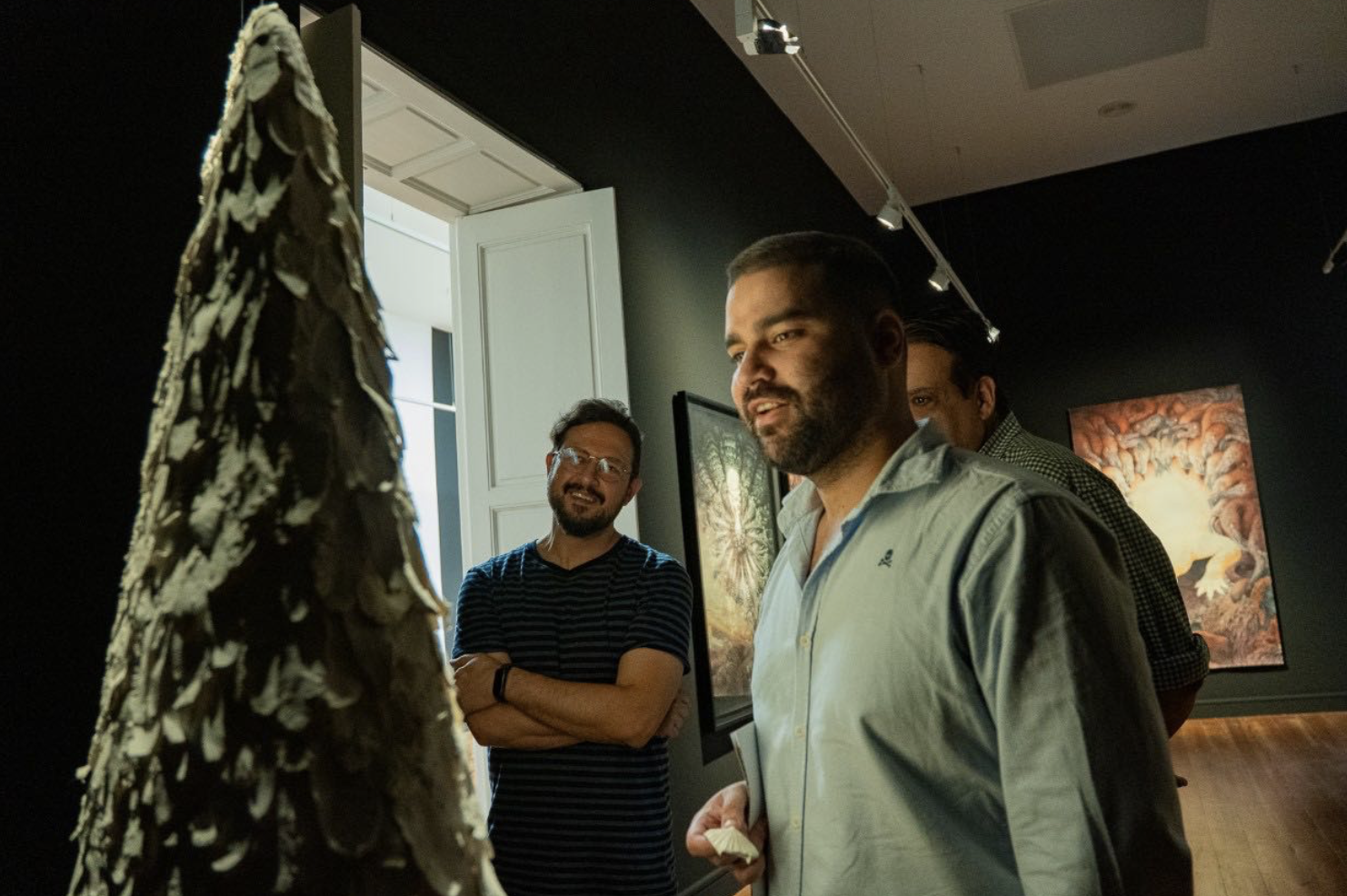 Según el comisario de la exposición, Francisco Pinto, “en esta muestra se escenifica el principio ontológico de la creación: el paso de la penumbra a la luz. En ese tránsito descubrimos volúmenes, texturas y trazos que revelan un lenguaje primigenio, capaz de hablar de la creación desde una dimensión mítica y atemporal”.