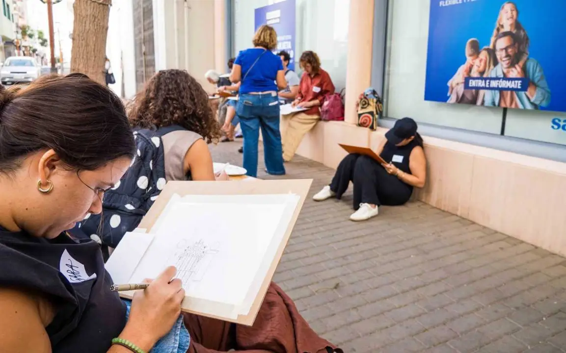 El taller ha permitido a los participantes explorar técnicas de ilustración urbana y experimentar con la observación arquitectónica desde una mirada creativa, trasladando el proceso artístico directamente al espacio público.