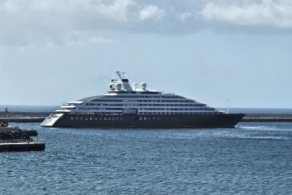El buque de ultra lujo "Scenic Eclipse (IMO 9797371) ha atracado esta mañana por primera vez en Arrecife con 228 pasajeros y 114 suites, en viaje hacia el Mediterráneo. Es propiedad de Scenic Luxury Cruises & Tours, una empresa de origen australiano y abanderado en Bahamas, que promociona a su nuevo buque como “el primer yate de exploración del mundo”. Dispone de dos helicópteros tipo Eurocopter EC130 y un sumergible, bautizado “SCENIC NEPTUNE”, construido por U-Boat Worx, de Breda (Países Bajos), que puede alcanzar profundidades de hasta 300 metros. El año 2023 salió a navegar su gemelo “SCENIC ECLIPSE II”.