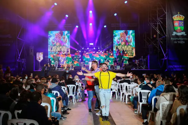 Conexión total este viernes del público sureño con los grupos artísticos invitados al Encuentro de Murgas y Chirigotas organizado por el Ayuntamiento de Yaiza con motivo de la celebración del Carnaval de la localidad turística de Playa Blanca, donde actuaron las murgas lanzaroteñas ‘Las Vacilonas’ y ‘Los Simplones’, la murga de la isla hermana de Fuerteventura, ‘Los Gambusinos’, que acaba de ganar en el Carnaval de Las Palmas de Gran Canaria, y las chirigotas ‘Los Lilones’ y ‘No aguanto más, vamos de impacientes’, segundo puesto en el Carnaval de Cádiz de 2020, cartel de lujo que redondeó un espectáculo con nota sobresaliente.