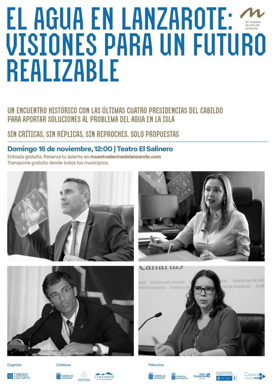 l encuentro, titulado “El agua en Lanzarote: visiones para un futuro realizable”, se celebrará en el teatro El Salinero en el marco previo a la 15ª Muestra de Cine de Lanzarote, un proyecto de Tenique Cultural reconocido a nivel nacional e internacional por su capacidad de vincular cultura, territorio y pensamiento.