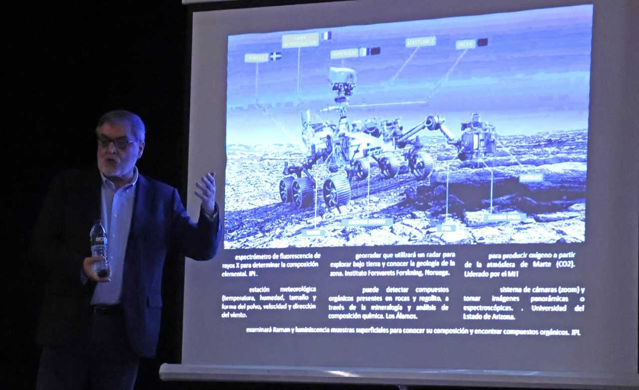 La intervención del investigador repasó los principales hitos que han posicionado a Lanzarote como referente internacional en geología planetaria y astrobiología, destacando colaboraciones científicas, publicaciones en revistas de alto impacto, proyectos educativos y la participación de la isla en misiones espaciales.