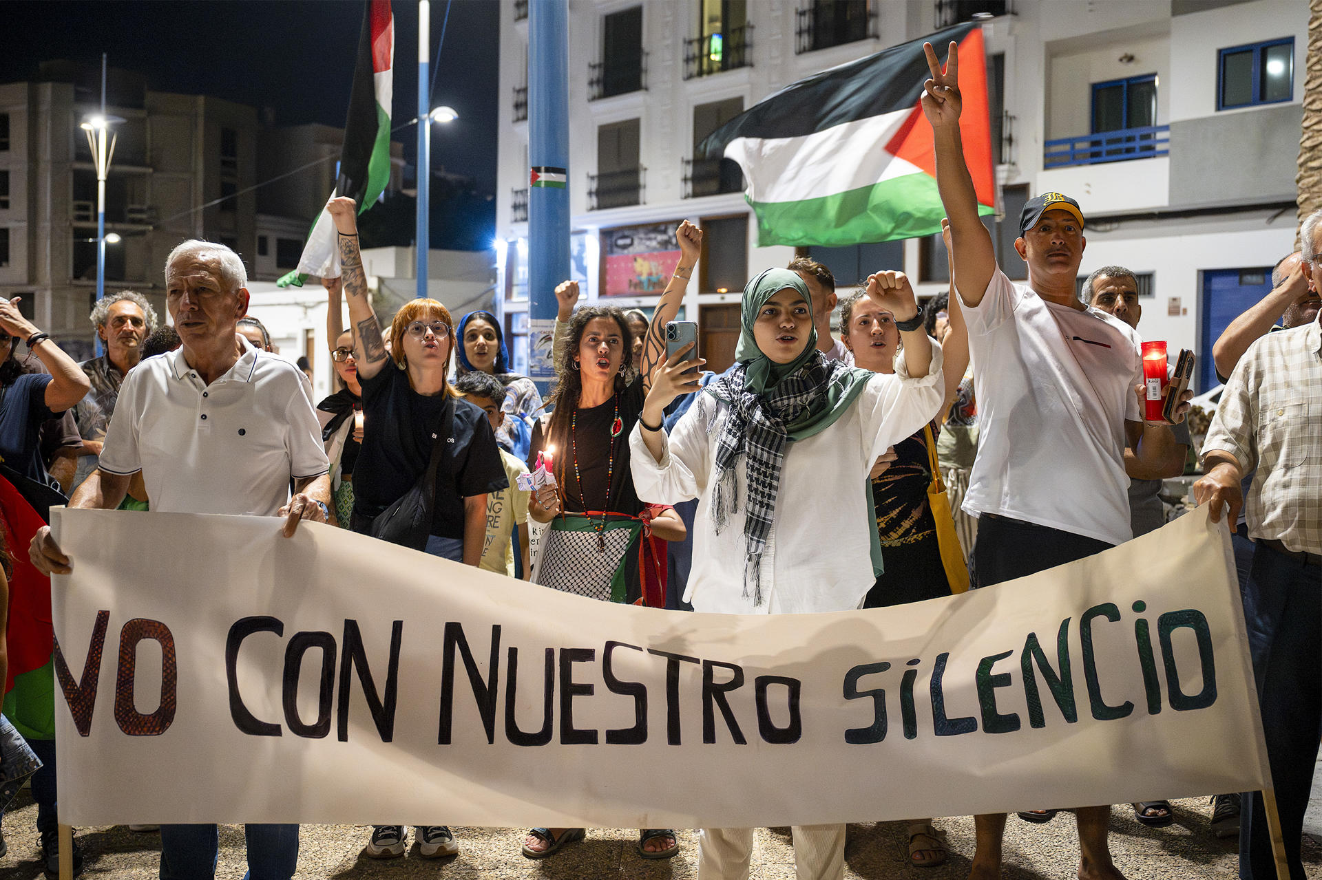 Cientos de personas participaron en una vigila en Arrecife con velas para condenar la ofensiva israelí en Gaza y Cisjordania
