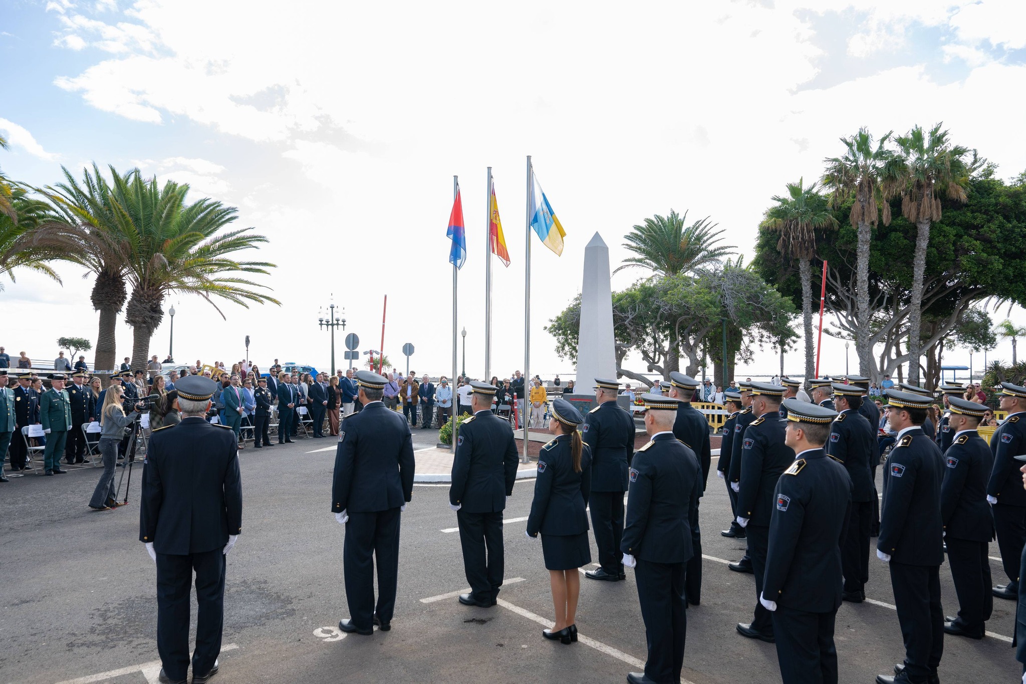 Tras ser descubierta esta placa junto al obelisco, instalado en los jardines exteriores de la Policía Local en la capital de Lanzarote, se tributó una ofrenda floral con una escolta y piquete de honor formado por agentes del Cuerpo de la Policía Local. Una amplia representación de los Cuerpos y Fuerzas de Seguridad en Lanzarote, Corporación Municipal de Arrecife, autoridades civiles y militares, y familiares de los policías, han estado presente en este acto y posterior ofrenda floral.