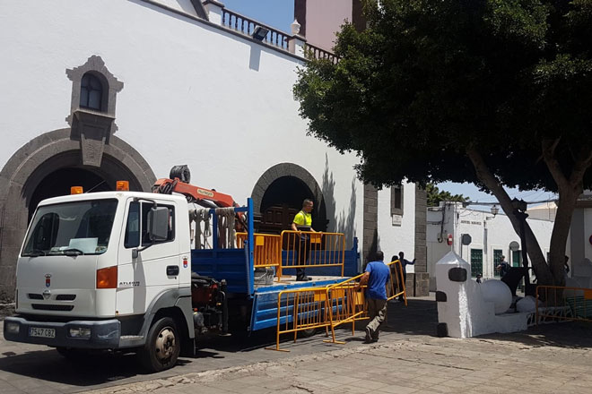 La Concejalía de Seguridad y Emergencias del Ayuntamiento de Arrecife, ha vallado en la tarde de este viernes una zona de la Plaza de Las Palmas, después de que varios informes municipales aconsejaran que se evitara el “peso sobre la estructura del aljibe” que se encuentra debajo de esta zona.