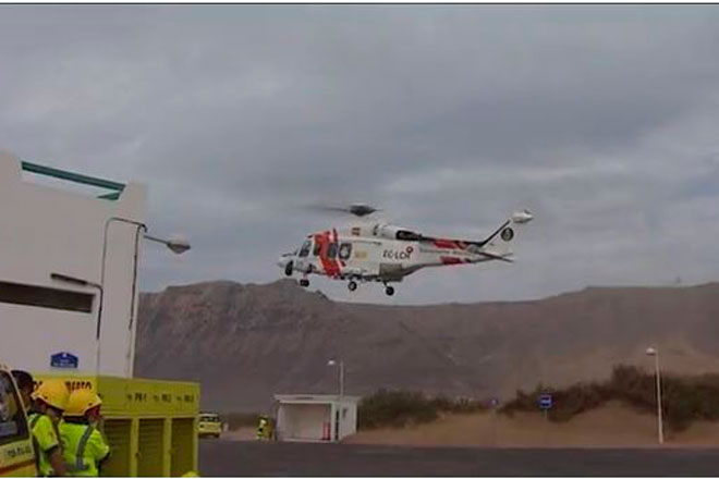 Las fiestas de la Caleta de Famara han incluido este año un simulacro de emergencias que ha incluido hasta un helicóptero. La realidad, sin embargo, es bien distinta: no hay ambulancia permanente.