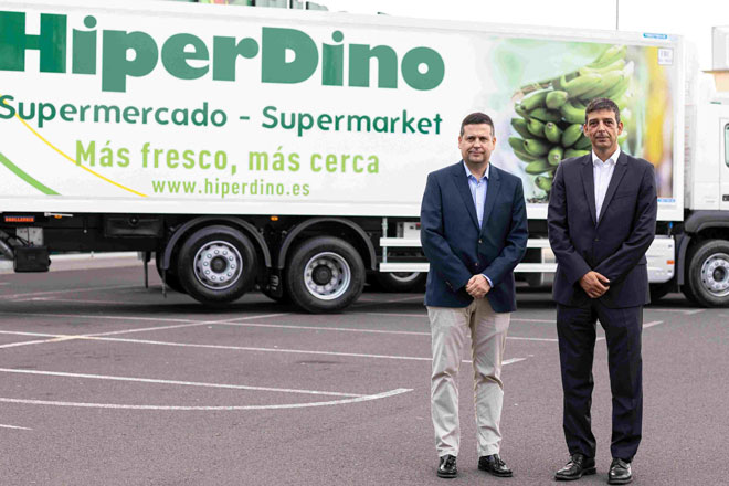 El acto de entrega de los nuevos vehículos tuvo lugar en las instalaciones del establecimiento HiperDino ubicado en la carretera de San Lázaro de La Laguna y estuvieron presentes el director de Logística de la compañía, José Manuel Poblador, y el director gerente de Volcanarias Servicenter, José Luis González.