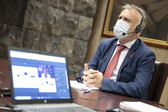 El presidente de Canarias, Ángel Víctor Torres, indicó esta mañana, antes del comienzo del Consejo de Gobierno en la sede de Presidencia de Santa Cruz de Tenerife, que hoy le ha planteado a la comisaria europea de Interior, Ilva Johansson, que la solidaridad entre los territorios de Europa debe ser “concreta y efectiva” y agradece que la postura de la dirigente comunitaria vaya en esa misma línea, según su intervención durante la sesión oficial celebrada hoy por el Comité de las Regiones de la UE mediante videconferencia. Según resaltó, la cita ha servido también para la confirmación de que la Unión Europea (UE), a través del Gobierno español, aportará financiación para la atención de migrantes en las Islas.