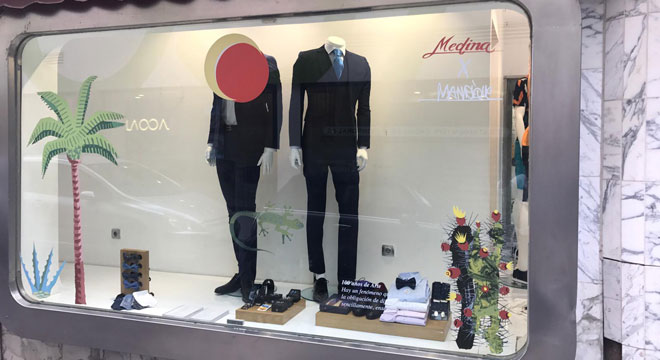 Medina es un comercio clásico de la ropa y el calzado situado en la calle Porlier y Sopranis de Arrecife. Ha adornado sus escaparates con alusiones a César y con esta frase: “100 años de Arte. Hay un fenómenos que tenemos la obligación de difundir, que es sencillamente enseñar a ver. César Manrique”.