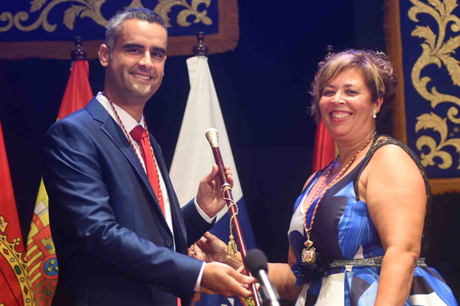 A las 11.20 horas de la mañana de hoy San Bartolomé ya tenía alcalde. Alexis Tejera Lemes, recibía el bastón de manos de Ana María Lopes da Silva, presidenta de la mesa de edad, tras prometer su cargo que lo proclama el primer edil municipal, con mayoría absoluta.