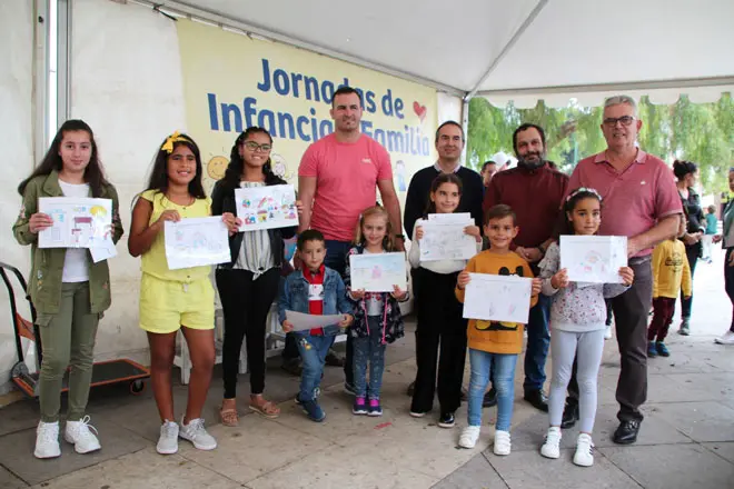 Peques y grandes participaron juntos de las actividades de animación y se divirtieron viendo las actuaciones artísticas a pesar del frío y la lluvia de medio día que no alcanzó a empañar la mañana festiva. El concejal de Servicios Sociales de Yaiza, Ángel Domínguez, el concejal de Deportes, Ángel Lago, y los ponentes invitados a las Jornadas de la Infancia y la Familia, Jesús Alemán y Pedro Alemán, entregaron las distinciones del Concurso de Dibujo.