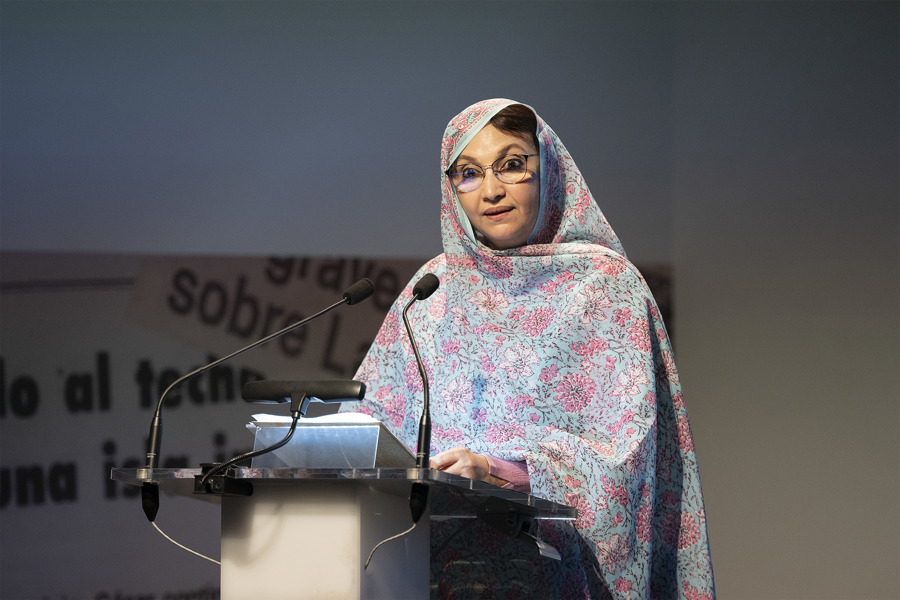 La activista subrayó que su historia no es solo suya, sino que representa un "testimonio colectivo" del pueblo saharaui, "un pueblo que ha sufrido demasiado ya" y ha vivido "el exilio, la represión, la tortura, la desaparición forzada, la ocupación ilegal y que, a pesar de todo, sigue en pie".