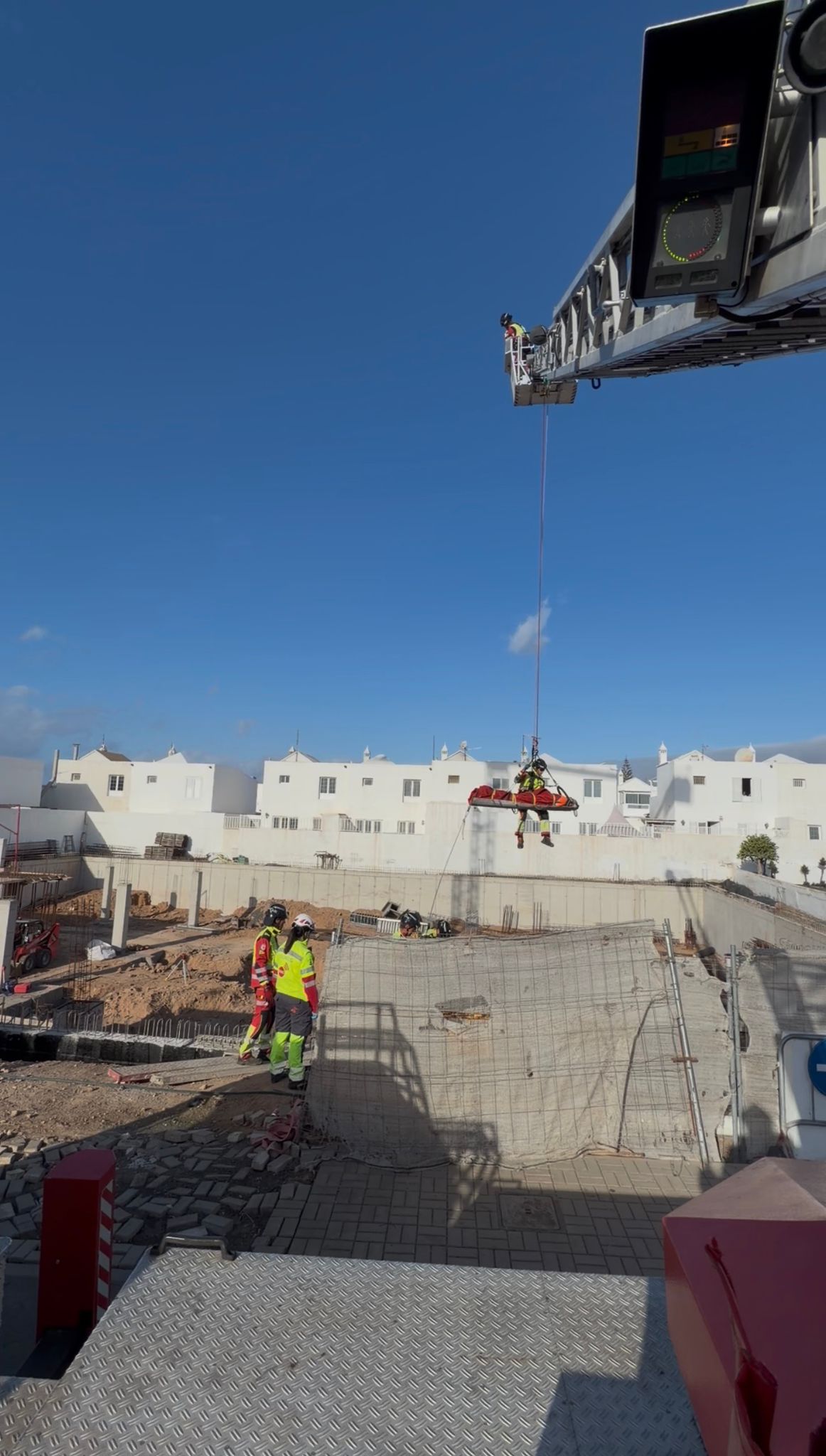 Alertados por la caída de una persona en una obra en Playa Honda, los efectivos de Seguridad y Emergencias se desplazaron al lugar, donde la Policía Local ya se encontraba habilitando la zona para la llegada de los vehículos de rescate.