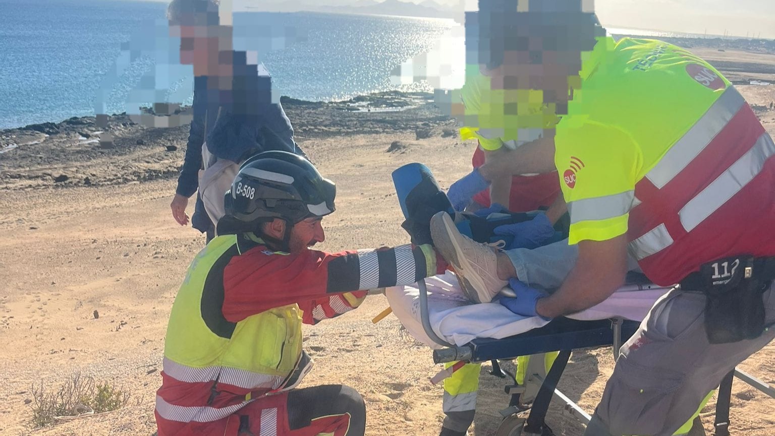 La herida, de 57 años, ha sufrido un traumatismo en la cadera de carácter moderado y ha sido evacuada en helicóptero hasta la helisuperficie de Arrecife y trasladada en ambulancia al Hospital Doctor José Molina Orosa.