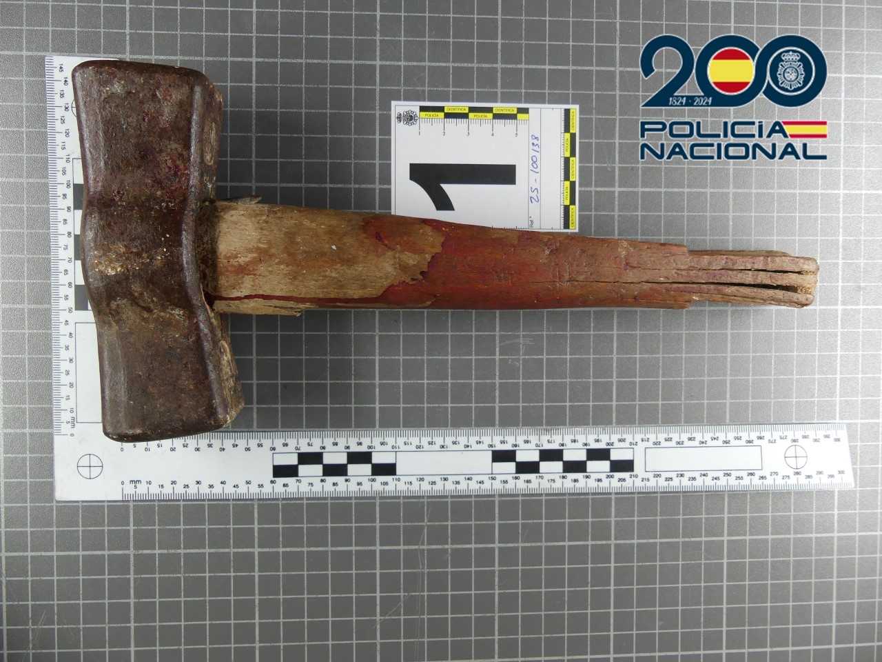 Los agentes realizaron una Inspección Ocular Técnico Policial en el lugar de los hechos, en la que se localizó el arma empleada por el arrestado, un martillo de grandes dimensiones, con evidentes restos de sangre.El joven, fue inicialmente detenido por un delito de tentativa de homicidio, que posteriormente fue calificado como homicidio consumado tras el fallecimiento de la víctima.