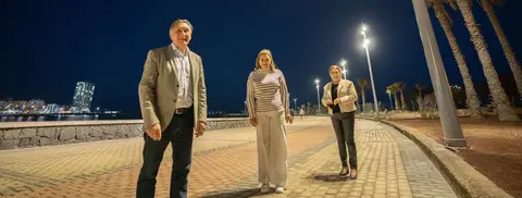 La alcaldesa Astrid Pérez, asistió ayer tarde a la inauguración del encendido de las 35 luminarias LED en las inmediaciones de la playa de El Reducto, el parque canino y el renovado Skatepark