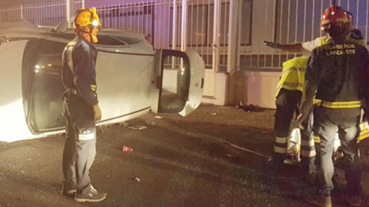 Grave al salirse el coche de la vía y chocar contra una palmera en Costa Teguise