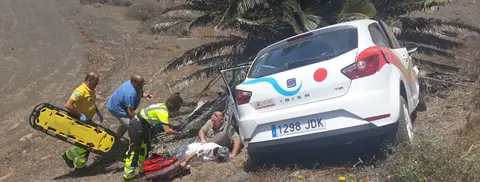 Dos mujeres españolas, de mediana edad, han resultado heridas en un accidente de tráfico en la carretera de Teguise a Mozaga después de que su coche se saliera de la vía y chocara con una palmera.