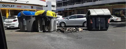 Tras comprobar que el incendio afectaba a dos contenedores de basura orgánicos, se procedió a su extinción con agua. También resultó afectado un tercer contenedor de plásticos.