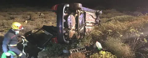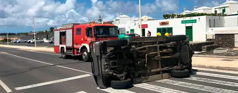 Los bomberos excarcelan a una mujer atrapada en su coche tras volcar en Haría