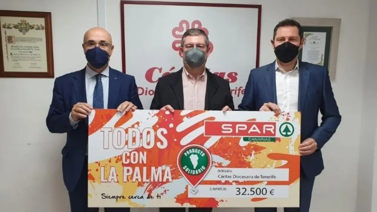 Spar Canarias entrega una donación solidaria de 32.500 euros para los afectados por el volcán de La Palma