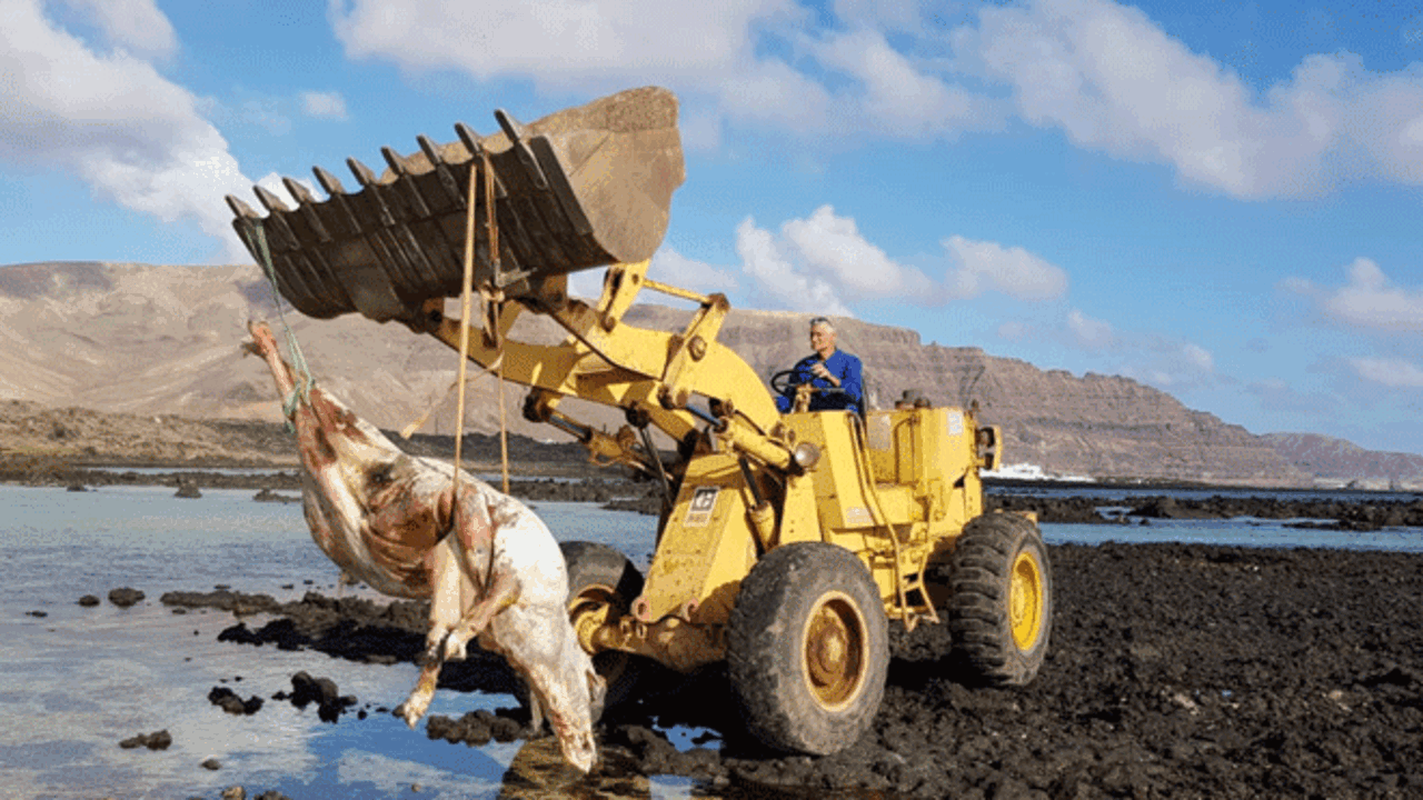 El Ayuntamiento de Haría retira el cadáver de la vaca El Ayuntamiento de Haría ha retirado el cadáver de la vaca, ubicado en el Caletón Blanco desde hacía varios días. biosferadigital