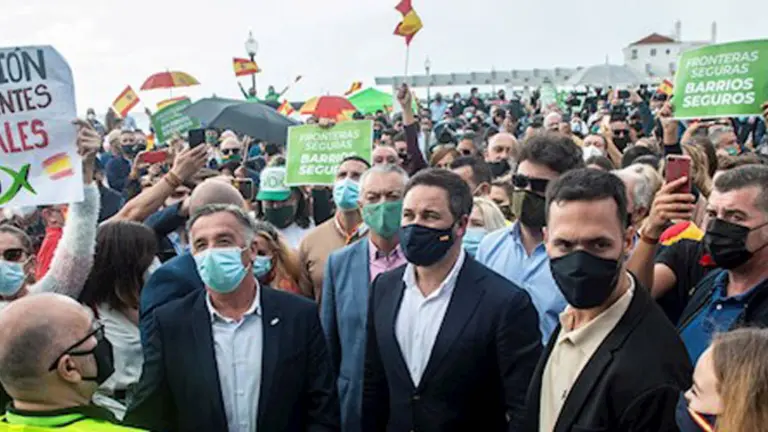 Tuvo lugar la manifestación de Vox, liderada por Santiago Abascal, contra la “inmigración ilegal” en el parque Ramírez Cerdá. "Somos más, somos mejores y estamos con vosotros,...