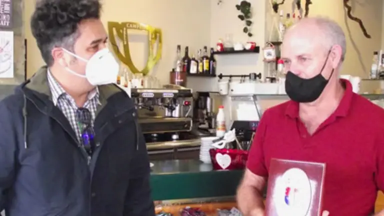 El concejal, Armando Santana, entregó una distinción al propietario de Cafetería Víctor el día de su jubilación en reconocimiento por su legado en la profesión.