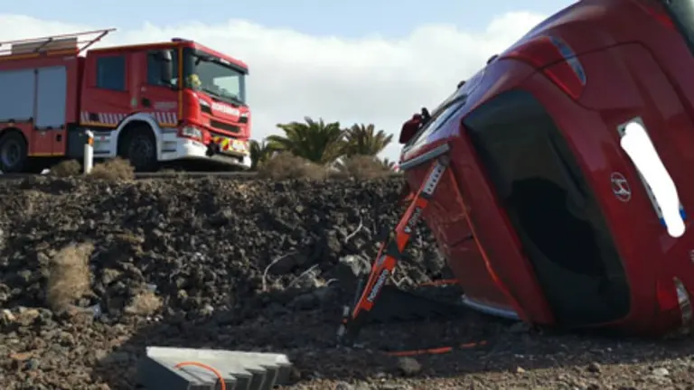 Vuelca un coche en la rotonda de Yaiza con dos personas dentro