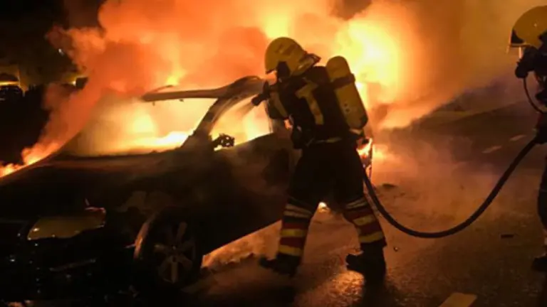 Los bomberos extinguieron el incendio con agua pulverizada y a chorro hasta que lo apagaron por completo.