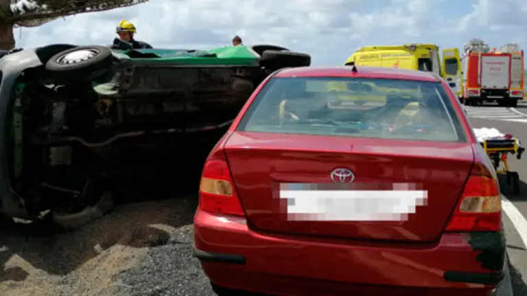 Cuatro personas se han visto afectadas en el choque de dos vehículos ocurrido en la localidad turística de Playa Blanca. Uno de ellos ha quedado volcado lateralmente.